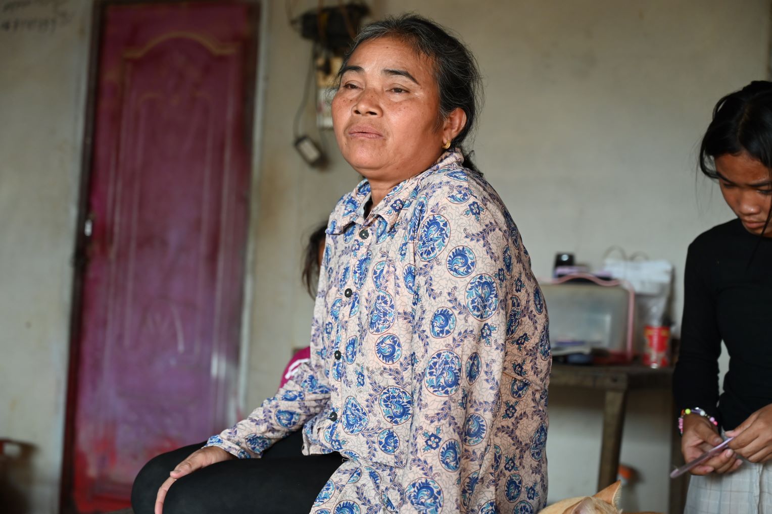កាលពីកងទ័ពថៃវាយប្រហារលើកម្ពុជាលើកទីមួយ ក្រុមគ្រួសារខ្ញុំមិនបានរត់ភៀសទៅណាទេ។ ខ្ញុំរស់នៅផ្ទះ និងឮស្នូគ្រាប់ផ្លោងល្វើយៗពីចម្ងាយ។ អំឡុងផ្ទុះអាវុធលើកទី២ នៅថ្ងៃទី៨ ខែធ្នូ ឆ្នាំ ២០២៥ ខ្ញុំនិងកូន៤នាក់ បានភៀសខ្លួនទៅរស់នៅផ្ទះដន្លង ដែលត្រូវជាឪពុកម្ដាយក្មេកកូនប្រុសខ្ញុំ នៅភូមិតាអុង ឃុំប៉ោយចារ ស្រុកភ្នំស្រុក ខេត្តបន្ទាយមានជ័យ ។ ចំណែកប្ដីខ្ញុំមិនបានទៅជាមួយខ្ញុំទេ ពីព្រោះត្រូវនៅមើលថែផ្ទះសម្បែង និងដាក់បាយឱ្យជ្រូកស៊ី។