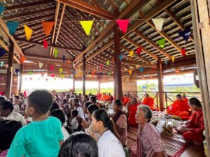 ប្រជាជនភូមិក្តុលលើ ប្រារព្ធពិធីឆ្លងផ្តាច់បង្ហាន់វេនព្រះសង្ឃគង់ចាំព្រះវស្សាតាមប្រពៃណី នៅផ្ទះសហគមន៍ក្តុលលើ ឬសាលាគរុភណ្ឌស្ទៀង