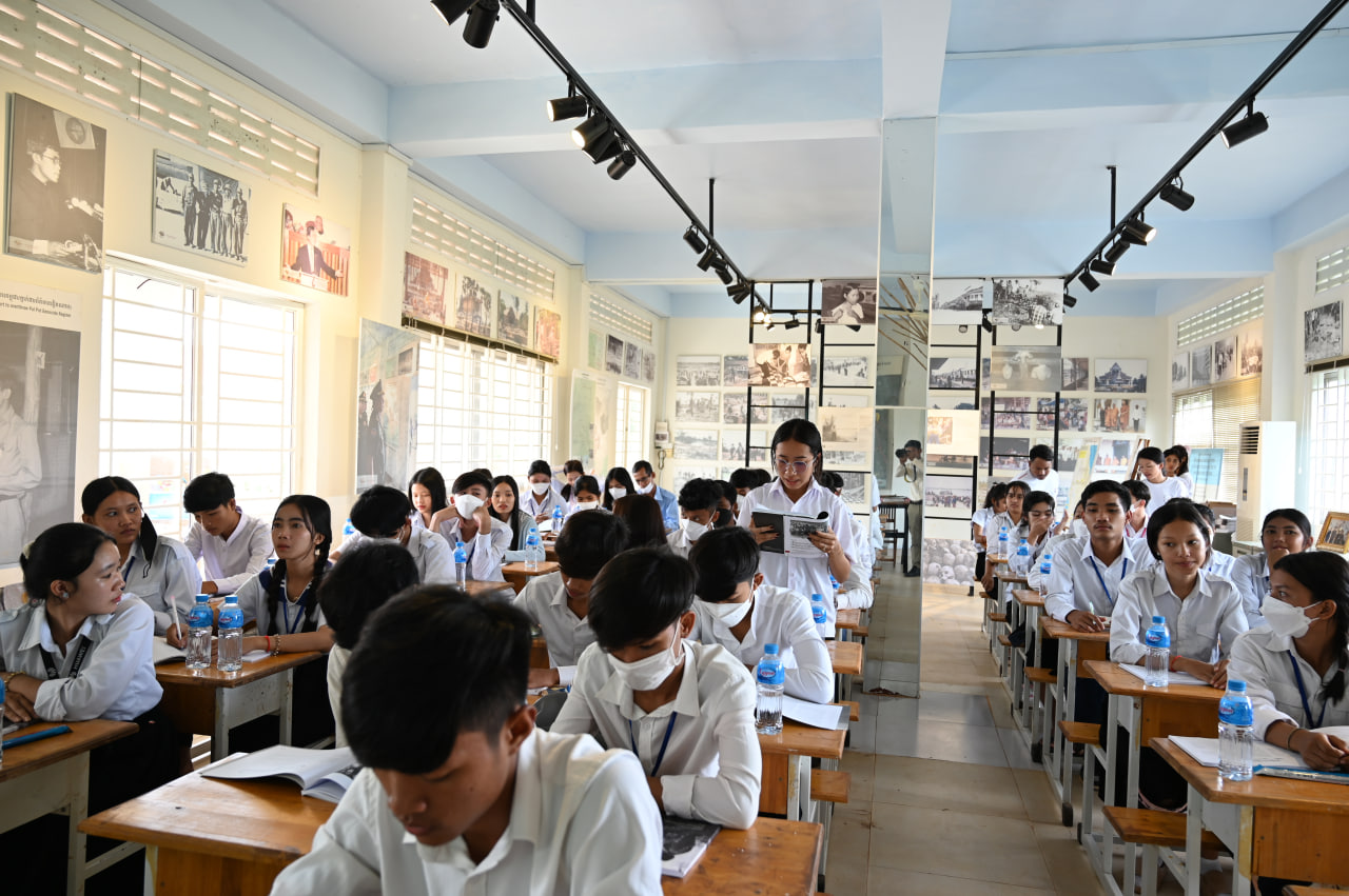មុនពេលចាប់ផ្តើមវេទិកាថ្នាក់រៀន សិស្សានុសិស្ស ត្រូវបំពេញកម្រងសំណួរស្ទាបស្ទង់ចំណេះដឹងជាមុនដើម្បីវាស់ស្ទង់ចំណេះដឹងរបស់ខ្លួនទាក់ទងនឹងប្រវត្តិសាស្ត្រកម្ពុជាប្រជាធិបតេយ្យ។ បន្ទាប់មក លោក ឡុង ដានី នាយកមជ្ឈមណ្ឌលឯកសារកោះថ្ម ឡើងធ្វើបទបង្ហាញខ្លីអំពីព្រឹត្តិការណ៍ប្រវត្តិសាស្រ្តខ្មែរក្រហម អមជាមួយផ្ទាំងពិព័រណ៍រូបភាពប្រវត្តិសាស្ត្រ ដែលដាក់តាំងបង្ហាញនៅក្នុងមជ្ឈមណ្ឌលកោះថ្ម។ ពិព័រណ៍រូបថតដែលដាក់តាំងបង្ហាញទាំងនេះ រួមបញ្ចូលនូវរូបភាពក្នុងអំឡុងពីមុន និងក្រោយរបបខ្មែរក្រហម។ បន្ទាប់ពីបានស្តាប់ការពន្យល់ បកស្រាយអំពីផ្ទាំងពិព័រណ៍រូបថត សិស្សានុសិស្ស ទស្សនាភាពយន្តឯកសារក្រោមចំណងជើងថា «ដំណើរឆ្ពោះទៅរកការសង្គ្រោះជាតិ»។